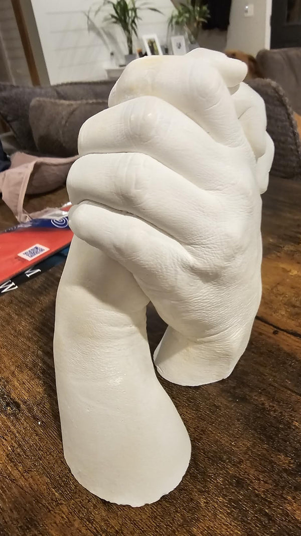 David L.Verified BuyerA Memory That Lasts ForeverMy wife and I did this for our 10th anniversary. When we pulled the mold off, we were both amazed at how every tiny detail was captured - even the small scar on her thumb. Our friends always ask about it when they visit. It's not just decoration, it's a piece of our story. I wish we'd done this sooner!